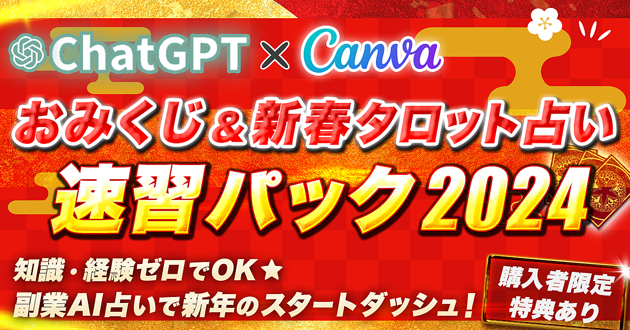 TVニューストレンドビジネス 【副業AI占い】ChatGPT×Canva【おみくじ&新春タロット占い】速習パック2024 phi721102024年12月3日2025年12月14日 目次 Toggle Related posts:ミヤネ屋【Kindle外注化戦略で失敗した話】価値提供ゼロのゴミ本を販売するやり方に嫌気がさしましたマルメターノ Related posts:おうちゃん松尾貴史圧倒的な後発組だった19歳の若造がスマホ1つで起業して月収50万円〜200万円を現在進行形で稼ぎ続けているTwitterマネタイズテンプレート
